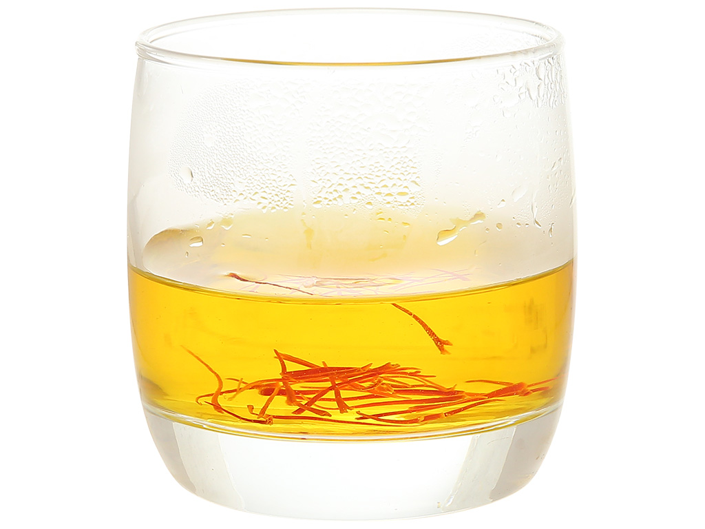 - Thả 5-15 sợi nhụy hoa nghệ tây (hoặc tùy theo sở thích) vào cốc rồi chế thêm nước ấm.